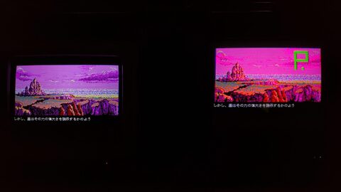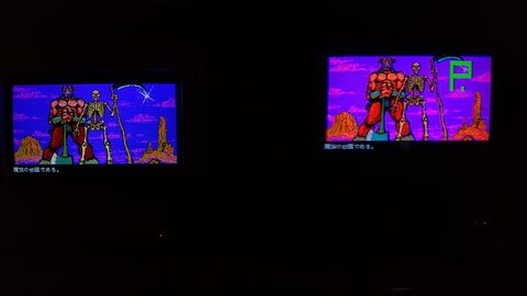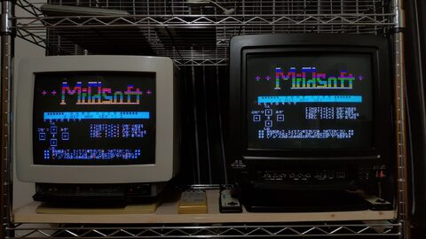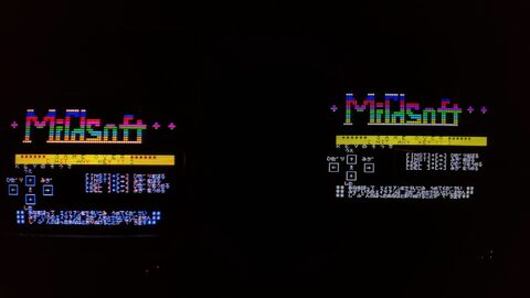 First, let me preface this by saying it’s not a tremendously scientific experiment. Although I made sure my major camera settings didn’t change, there are a lot of factors on the monitors themselves that I’m not sure how to control or don’t have the ability to compensate for, and some results I can’t interpret in terms of what is causing what I see as differences and shortcomings. Also, I’ve made the images quite large, larger than usual, because it can be hard to discern the detail when they are small. And nothing new or unexpected is happening here. This is just a light comparison in how much improvement can be achieved by using the best output mode. Anyway, here’s what I did. First I put my MZ-700 up to the task. I connected it by both composite video (to my NEC PC-TV455) and by digital RGB (to my Sharp CZ-600DB) and then loaded the game “Ottotto”. First with lights on: ![]() ![]() Then with the lights out: ![]() ![]() The digital RGB is of course much clearer. I kind of feel that composite should have been better than it appears to be, though. But I’ve tried the composite output on another monitor, and it’s about the same. I wonder if something is not working quite right in the composite output circuitry. Next I changed everything. The computer for this round is the Sony HB-F1XD (MSX2). The monitors are the same, but this time their functions are swapped – the PC-TV455 gets analog RGB and the CZ-600DB gets the composite. I shot it with both BASIC and the game Last Armageddon. Again, lights on: ![]() ![]() ![]() And same scenes with the lights off. ![]() ![]() ![]() And again, the analog RGB looks much nicer. It’s also noticeable on the MZ-700, but especially on the MSX2, which displays kanji, the big difference is in the clarity of the text. Although my Sharp X1 Turbo Z in high-resolution mode by far provides the clearest text, upgrading from composite to RGB is still tremendously helpful in terms of clarity. Also, the color palette is surprisingly different, and some of it may be down to settings on the monitors, but at least to some extent, the color differences exist even if used on the same monitor. Umm, also, if anyone knows how to remove that gigantic “P.”, I’d be really grateful! I think it requires the remote, which I don’t have. |