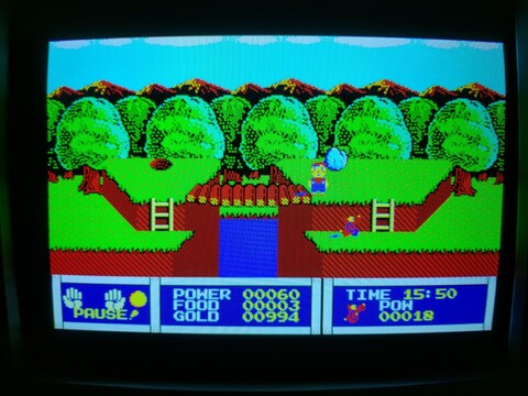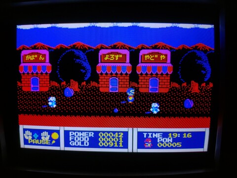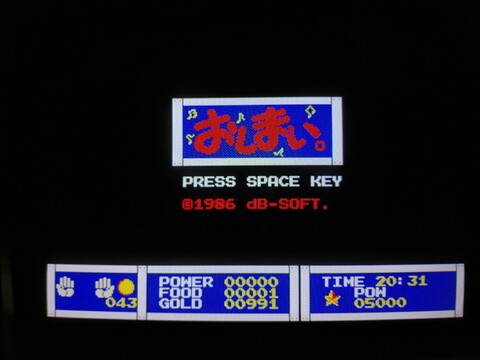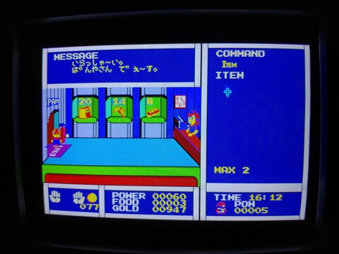 Tonight I tried out Woody Poco. I had been under the misconception that you played a woodpecker, but actually you play a wooden boy. It seems to be an adventure game where you can save your progress as you go. It’s a bit hard because I sometimes run into enemies that can kill me in one hit, so I’ve only explored about eight overworld screens, but the game is so far quite fun and shows a decent amount of depth. The overworld is bright and vibrant but can turn dark and dangerous at night. At one point, shooting stars attacked me but later in the game I found some kind of cross and a helmet, so perhaps that is protecting me, or maybe the shooting stars only appear on certain screens. From the overworld screen, so far, there are two other kinds of screens to be accessed – underground holes and buildings. You can buy, sell, give, or trade items in different locations that help you progress through the game. Many stores say they only serve women, so I am guessing you need to find someone else on your quest who complements you in your journey and you can then go back to previously inaccessible locations. There haven’t been many kinds of enemies, but one in particular was kind of interesting – the old men. By default they are jolly and blue in color, and they only bump into you and hurt you a bit, taking a bit of your money in the process. But if you try to attack them, they turn violent and bright red, becoming incredibly powerful. They will charge at high speed and kill you. So they’re just something to put up with, it seems, not fight against, but maybe later you can get revenge. It’s another game with 400-line graphics (640×400) and FM sound, the graphics look quite good compared to the previous game I was playing (Euphory), but the music is similarly short and repetitive. ![]() ![]() ![]() ![]() ![]() ![]() ![]() ![]() ![]() ![]() ![]() ![]() |