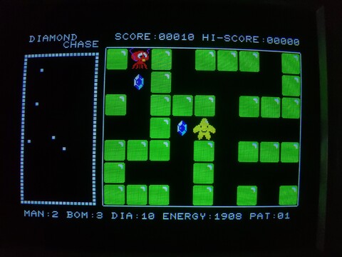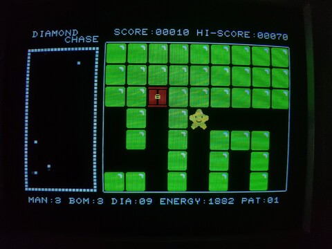 This is a game I've yet to see on any other platform, though I'm not yet committing to stating that it's an MZ-1500 exclusive. The concept is simple, traverse the maze looking for diamonds, and escape through the door to the next level, before the baddies get you. In practice, this game is really quite hard! The enemies are not terribly numerous, but while you can see their relative location on the radar map, you don't actually know the shape of the maze except what's right in front of you. If an enemy appears on screen and has a direct path to you, it is very rare that you can actually escape them! They latch right on to your path at the same speed, so any misstep on your part brings them that much closer to you. Once in a while, they let you off easy but it's far more often that they nab you. ![]() ![]() ![]() ![]() ![]() ![]() ![]() The box is fairly unique, I thought, as not only are the plastic boxes far more common than the cardboard ones for this system, but the artwork seems to have very little to do with the game itself. ![]() ![]() ![]() ![]() |