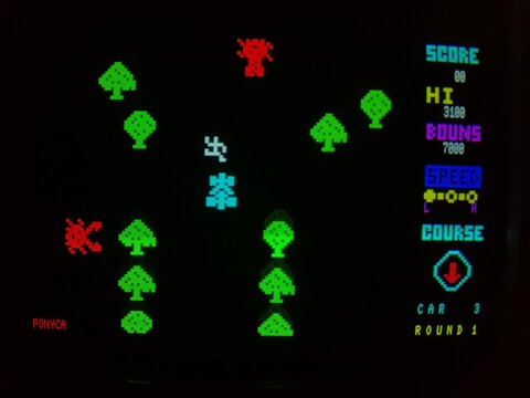 Drive around the forest and pick up would-be victims and take them to safety in the only house in the area. You can't shoot the baddies, but you can run them over safely if you're going fast enough.