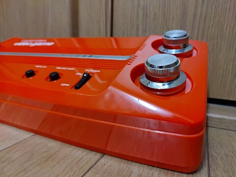 It did not, however, come with a power adapter. As I was busy anyway, it laid around unused while I ordered a power adapter with appropriate voltage, amperage, and polarity specifications. From AliExpress. So it was cheap, but it took forever to get here. But the machine was patient. However, when it arrived, the plug was too big! So I broke down and bought four big ol' honkin' D-size batteries. Fortunately the thing worked! It was probably very glad to see some use after potentially decades sitting in its box. Video output is over RF only, so I was surprised to see how clean it is.