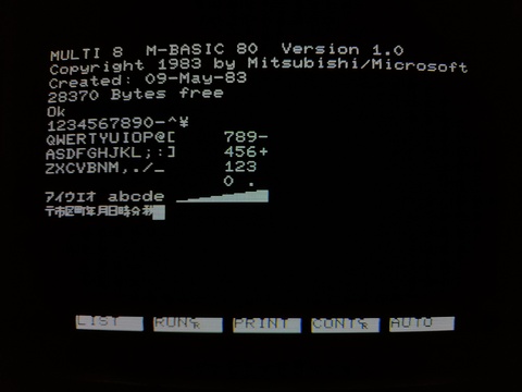 Well, it was bound to happen sooner or later; if a Japanese company made an 8-bit computer, I'm more than likely going to want to try it out. This time, I came across the Mitsubishi Multi8. It was far from a success, after the release of this, Mitsubishi chased the MSX market instead of continuing with their own unique 8-bit offerings. There was also a namesake successor, the Multi16, I don't know much about that one but it apparently wasn't compatible with the Multi8. You probably assume I bought this from Yahoo Auctions or Mercari, but you're so wrong. This is, I believe, the first time I walked into Beep and bought a computer from Beep. I didn't buy it immediately, I saw it and thought, "hey, that price isn't bad for a collector's item at a retail store." But I went home without it. And I went back a few weeks later, had the same thought, and went back home without it again. And on the third time, I saw it and wandered around the store for about 45 minutes, hemming and hawing about whether to buy it or not and I eventually gave in on the solid logic, "this will be far from the stupidest thing I've ever done." And I was probably right! This is the only Japanese 8-bit I've had that went with solid white. Not beige like the PC-8801, not white sandwiched between cream like the FM-7, and not white with a gigantic, interchangeable keyboard overlay like the Pasopia7, but they sought to make a basically-white computer, with a blue logo and a single blue line for accent. When I got it, the front tabs weren't really keeping the lid closed properly. I started to open it up, struggling for about ten minutes to remove the top half, when I finally found the one and only screw hidden under the cartridge cover. Its removal allowed the top to slide right off. I pushed the tabs outward, ever so gently. It doesn't feel "right", but it does stay closed somewhat better. The keyboard has a good feel and layout. Overall, it's a very handsome machine, check it out! ![]() ![]() ![]() ![]() ![]() ![]() ![]() ![]() ![]() ![]() ![]() ![]() ![]() ![]() ![]() ![]() ![]() ![]() ![]() ![]() ![]() ![]() Beep sold this one as-is and without warranty, but they did write a note saying that it was tested to power on and display the initial BASIC screen correctly. For some reason, I made a point of asking them when they had performed this test, they went and checked, and reported that it was about three months ago. I asked if it could be tested to that extent again, they went and checked and said "no," and I predictably bought it anyway. Early 80s Japanese computers are made of sterner stuff, and it had been tested to work in the last decade, so I wasn't surprised that it still worked. But I was happy about it. Powers up, shows BASIC, and every key responds; that's a good start! ![]() ![]() Now, this is a pretty rare machine, much more so than, for example, my Pasopia7, which itself is pretty rare. And when the computer is rare, the software is rare, and it gets absurdly expensive. For example, just a few weeks before the time of this writing, Cannonball for the Multi8 sold for over 50000 yen. Yikes! Fortunately a friend had a bit of software I could try; this Pengo clone called Ice Block and the system demo. The system demo is a pretty nice graphics display, they didn't do too much with the audio, though. The good thing is that it proved that the machine was working pretty well, being able to load over the CMT port and fill up some memory and video memory without going bonklers. ![]() ![]() ![]() ![]() ![]() ![]() |