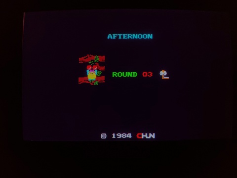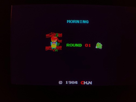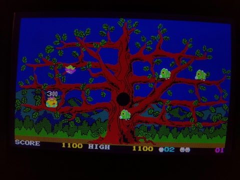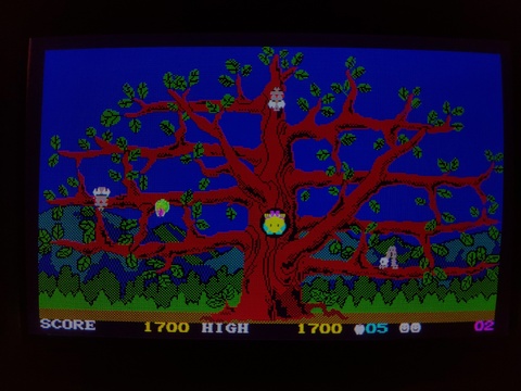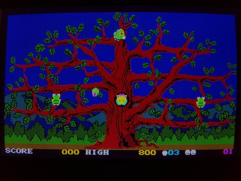 You probably think I misspelled Neutron, but I am not exactly sure what was intended. If I do a LOAD command on the tape, it says it found "NEWTRON", and the title screen says NEWTRON, but I am not sure if it was a mistake on their part or not. I'm going with Newtron as it's the only first-hand reference for it. In any event, this is one of the nicest early PC-8801 games I've ever seen. It is pre-SR models, so it was made in the digital RGB era, thus it is limited to 8 colors. but wow is it a nice-looking game. I am not sure how they pulled off the tree, though. Brown is not part of the 8-color palette, and it doesn't seem to be dithered. Grab the prescribed quantity of fruit to advance to the next stage. But you can't *just* grab the fruit. It needs to ripen first. And once it ripens, the bugs want it, as well. Your window of opportunity is fairly short. The further you advance, the brighter it gets, because it's later in the day. But it also becomes more difficult as the fruit requirement increases with each stage progression. Sometimes you have to move diagonally, which adds a bit of a challenge, as well. ![]() ![]() ![]() ![]() ![]() ![]() ![]() ![]() ![]() ![]() ![]() ![]() ![]() ![]() ![]() ![]() And the box art is as fantastic as the game art! ![]() ![]() ![]() ![]() ![]() |