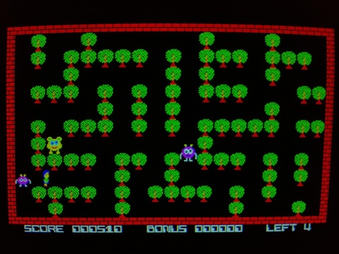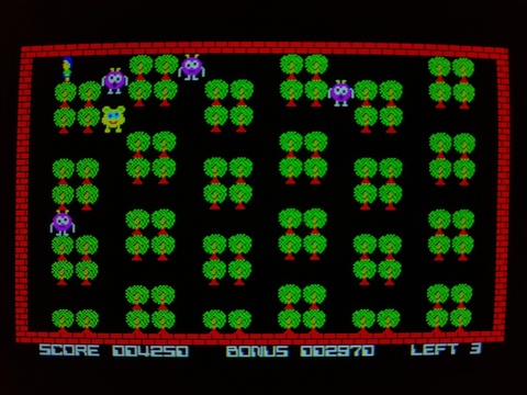 Hudson Soft releases the same games for many platforms. I think they sometimes try to take advantage of a system's particular features when it's convenient. So most of their games have a few spoken words in key parts of the game if you're playing them on the PC-6001mkII and above. For Pasopia7, it would have been great if they had used the hardware dithering to give the appearance of more colors, but instead they opted to support the joystick cartridge. Well, that's something, besides Hudson Soft games the only game I know of on the Pasopia7 to support a joystick is Packings. It seems to me that the joystick cartridge is an inelegant solution compared to on-board joystick ports, because it's inviting developers to consider "well, how many people REALLY have the joystick cartridge?" It's certainly less than the number of people who own the systems, so when some portion of game developers decide not to support the joystick, fewer people decide to buy the joystick cartridge.
