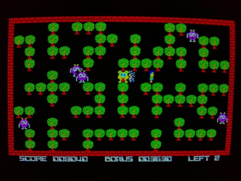 Jamasuke, the bothersome alien that doesn't hurt you, has a benefit. If he sets off a bomb, there is a chance that a fruit will appear. You can really rack in some points that way.