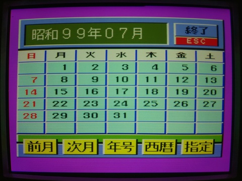 The first release of the Panasonic FS-A1 came in two colors: boring black and rad red. I mean, the black one is also quite handsome, with its orange accents, but black is pretty laid-back and unobtrusive while red is more eye-catching and statement-making. Opinions are opinions and they're all their own special treasures and all that, but Yahoo Auctions closing prices, while there are a lot of variables at play, point to the red variant being far rarer and somewhat more expensive on average. Look at it, it's easy to see the appeal! ![]() ![]() ![]() ![]() ![]() ![]() ![]() ![]() ![]() ![]() ![]() ![]() ![]() ![]() ![]() ![]() ![]() ![]() ![]() ![]() ![]() This was a bargain-priced computer for sure, being sent to market with a price tag of 29,800 yen. I'd buy a new one in a heartbeat at that price! Anyway, with that kind of value, it's no surprise that the box is really cheaply made. It covers but four sides of the cube it makes, and is paper-thin (well, a medium-grade cardstock, I wager, but for a computer box, really thin). It's only job is to hold that packing foam together. Despite the quality of the material, they didn't seem to skimp on the box design, pretty cool! For its age, it's held together fairly nicely, though not completely free of blemishes. ![]() ![]() ![]() ![]() ![]() ![]() ![]() The machine worked as far as I tested it, which is the audio/video output, keyboard response, joystick port, and top cartridge slot. I tried the MSX2 port of Bubble Bobble on it and I'd say it's pretty good! The FM Towns port is better, but I mean, that's a Z-80 vs a 386, among other lopsided factors. ![]() ![]() ![]() ![]() ![]() For a few years, my main MSX machine was a Sony HB-F1XD, and I was sometimes jealous that it didn't come with any on-ROM software like a lot of models, including this FS-A1, did. So now I have/have had a couple that came with on-ROM software. This one looks snazzy with its colorful menu, but the software itself is just sort of quirky. But, well, quirkiness is part of what this collection is all about, so even if it wouldn't have seen heavy usage back in the day, it's fun to explore a bit what the makers did to try to distinguish themselves. So what we have here is the opening menu and the first three utilities - all time related. There's a standard clock, a stopwatch, and a countdown timer. The countdown timer lets you choose from three different sounds - a spaceship (which I doubt the authenticity of), a bell, and a police siren. ![]() ![]() ![]() ![]() The next utility is a calendar, and it has two date modes - Japanese era-centric calendar and western calendar. The Japanese calendar works, but I just realized as I am typing this, I don't know if it will work precisely right after this very year (2024). It says 99th year of Showa era. So at first I just assumed that it is limited to 99, but now I just realized it *is* Showa 99, at least, if it were still Showa at all. Maybe next year it really would show Showa 100 and it's more adaptable than I imagined. The western date checks out good. ![]() ![]() Then there's a calculator. Compared to the Hitachi MB-H3 calculator, I think they put in some effort to make it look fun, but of course a pocket calculator was still much more practical at the time. ![]() ![]() And finally we end up with the FS-A1's version of Notepad. It's limited in that the font size is so big, and it can only display alphanumeric, hiragana, and katakana, so you can't get anything too complex up at once. But this may actually serve someone well who hates handwriting as much as I do. ![]() |