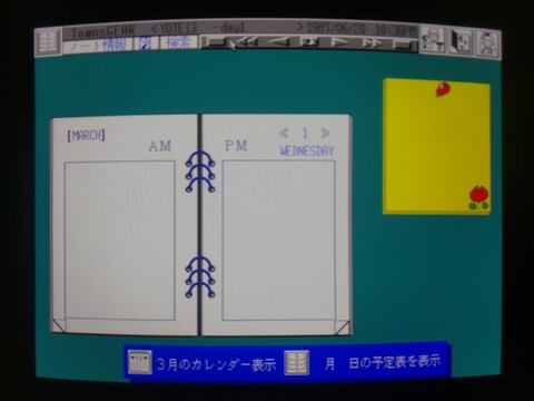 There was a surprising amount of extra content on the FM Towns 1.1 L10 CD. I guess it shouldn't be that surprising, as they had space to burn (literally!), but it's a curious thing, computer manufacturers at the (1987-ish) rarely had 500MB+ of storage with nothing better to do than fill it up, so what would they come up with? Well here's Fujitsu's answer. It boots up like any other Towns OS I've seen, with the splash screen followed by the main Towns OS interface screen. 1.1 seems a little more space consuming with its interface as opposed to 2.1, which was a bit more discrete and gave you more space for windowing tasks. ![]() ![]() One thing they added was this launcher. It contains links to various content on the CD. One of them is a small collection of on-disk music, each song having its own image in the background with the player integrated into the menu bar and a few additional controls at the bottom. I didn't try everything but there was also an address book and a file browser that allowed you to see some of the contents directly. ![]() ![]() ![]() ![]() ![]() And there was also a fairly long multimedia slideshow, in part telling a story and in part showing off the FM Towns in the (staged) wild. ![]() ![]() ![]() ![]() ![]() ![]() ![]() ![]() ![]() ![]() |