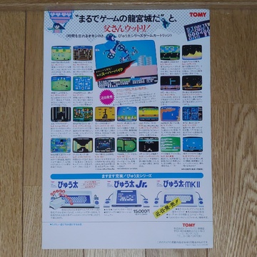 I picked up a Tomy Pyuta mkII on Mercari recently. This is a follow-up to the original Pyuta, similar to how the Commodore 64C followed the Commodore 64. Except while the Commodore 64C was a cost-saving implementation of the Commodore 64, this one looked like it provided a minor upgrade. From the outside, at a glance, it looks like they just swapped out the keyboard, offering a short-travel plastic keyboard, which was much more usable than the rubber chiclet keyboard that the original sported. ![]() ![]() ![]() ![]() ![]() ![]() ![]() ![]() ![]() And while that was true, this change was a bit of a double-edged sword. The original keyboard was unpleasant to use, to be sure, but it had some purple accents, and purple is my favorite color. If I were picking a modern keyboard and my choices were a mushy dome keyboard with purple accents or a plain, decent quality mechanical keyboard, of course I'd give up on the purple accents with no thought, but this is going from a cheap keyboard with charm to a slightly better keyboard without charm, and I will rarely use it anyway, so I kinda dug the original keyboard. But the surprise is, that was not the only change. There were two more subtle external changes that I discovered. One, wisely, Tomy ditched the Controller 1/Controller 2 stickers for building recessed characters into the mold. This prevents rubbing and fading that you often see on Pyuta controllers these days. Good job there. ![]() ![]() ![]() ![]() ![]() ![]() ![]() In addition to the recessed characters, the joystick controller connector contains a small amount of tension so you have to press in on the connector in order to release it from the joystick port. I am guessing that since the computer was geared toward children, they were not necessarily gentle and caused it the controller to become dislodged during gaming. The other change is that they ditched audio/video output ports and reverted to RF only. Huh. Not a fan of that. I have an AV switcher with a dedicated powered port for converting RF signal, and it's being displayed to an X68000 TV monitor, which was pretty high quality. So the final output is relatively clean, to my eye, but this is a big step back in convenience and I imagine a step back in clarity for home users at the time, connecting to a standard TV. ![]() ![]() Anyway, that sums up the differences observable from the outside. But there were a couple of surprises awaiting me post power-up. Actually, I thought it was not working correctly when I got it. The opening graphic animation and the system menu changed between the original Pyuta and the mkII. The G-BASIC menu item was replaced with BASIC, and BASIC didn't load. If I attempted to load BASIC, it would reset the machine. If I had a cartridge inserted and chose BASIC, it would usually react differently depending on the cartridge, but it never gave me a stable BASIC operating environment. Finally, I found a stray piece of paper with exactly this information written on it, and the computer was, in fact, behaving as expected. And a YouTube video pointed me in a more fruitful direction. G-BASIC was moved off the menu and was a sub-function of the graphic utility. You have to press MOD three times, MON, and then type GBAS and press enter. It gave you the below screen, which allows you to type in G-BASIC code. It only shows you two lines at a time, which is annoying, but perhaps there is a command to open up the rest of the screen. In any event, two lines was enough to test the keyboard well. ![]() ![]() ![]() But this, too, was another big change. Like, massive. They stripped out all of the katakana function! In retrospect, I could have guessed as much by the lack of katakana on the keyboard. Although the tokenization is undoubtedly compatible, one of the truly unique things about the original Pyuta was that the BASIC was all katakana based, using Japanese equivalent words and often (but not always) changing the word order to match Japanese grammatical order. In the mkII, we're given the far more typical English-based BASIC, and it was a separate purchase. And on that note, what of the games that were made with the built-in katakana support? They display in meaningless English. If you look back at the photo with Frogger running, you'll see that スコア1 (score 1) and ハイスコア (high score) have been replaced with "mja1" and "zbmja". The bottom left displays "Ah(???)a00", which originally was Aクリア00, an indicator that you had chosen "Amateur" mode and had so far cleared 0 stages. It seems unlikely that there were any game-stopper issues resulting from this, though, as the startup sequence for every Pyuta game was to press 1 or 2 (number of players, if supported), and left or right button (for amateur or pro). I don't think any game required reading as part of the gameplay. I believe the system was complete, although I failed to take a photo with all components visible (actually, now writing this thing, I wish I had taken a couple more photos of the opening graphic and menu). It contained the system and box, of course, and was rounded off by the controllers, user manual, tape recorder cable (CMT cable), RF switch and cable, and a flyer showcasing the Pyuta lineup and software library. Only thing I am currently unsure of is whether this is the only manual. The original Pyuta contained a nice thick manual explaining all of the G-BASIC commands, while this one has more of a thin user guide to the computer overall, with little mention of G-BASIC commands. It is possible that since they started selling BASIC separately, they didn't feel the need for a bigger manual to be included with the system. Or possibly mine was just missing a G-BASIC manual. ![]() ![]() ![]() ![]() ![]() ![]() ![]() ![]() ![]() ![]() ![]() ![]() ![]() ![]() |