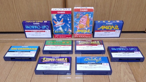 The PV-1000 and PV-2000 came out at about the same time and had similar capabilities, and with the cartridges being the same size and sharing many of the same titles, I thought compatibility was sort of a given, but in fact it is not. It says on the cartridges themselves that cartridges labeled for one machine cannot be used in the other, as it can damage the system. Well, I doubted that, so I checked online, and I still don't think it would actually damage anything, but someone else had reported that there is indeed no compatibility, so I didn't take it any farther. In the end, the stash of games I could actually use was this: