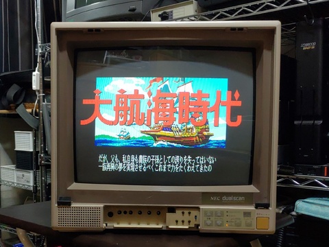 The PC-TV351 by NEC is a cut below the holy grail of PC-TV monitors - the PC-TV455. But actually, the difference is not that great. It has most of the same connectors; the PC-TV455 offers an extra AV input, and it shares one of those inputs with an S-video input, but if your primary goal is computers, this isn't really relevant. ![]() ![]() ![]() ![]() ![]() ![]() The tube is gray rather than the jet-black tube that the PC-TV455 boasts, but I am not sure exactly how much, if at all, that impacts image quality. Perhaps gray offers less contrast? Black levels may be higher than ideal? The actual video output doesn't really look that way, though. And the sync rates stop at 24kHz, so it's not a good choice for either the X68000 or FM Towns. But for me, it works with almost everything I have available to throw at it. Here it is running a mish-mash of PC-8801, X1 Turbo Z, FM77AV, and PC Engine software. ![]() ![]() ![]() ![]() ![]() ![]() ![]() ![]() ![]() |