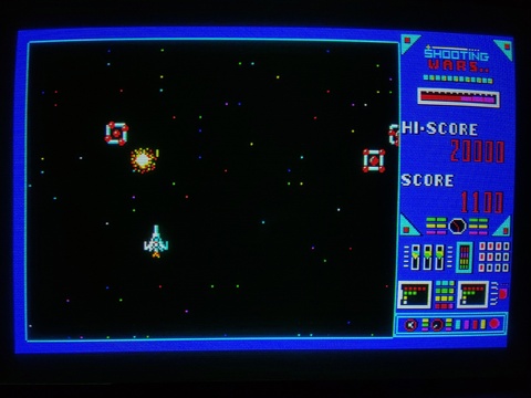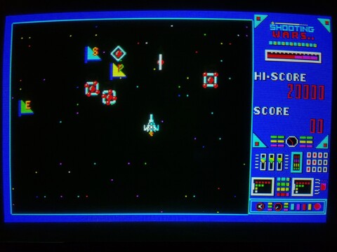 The games exhibit some interesting behavior. They can be used as stand-alone games, which function as expected, but if the games are loaded as part of an element of the board game (in other words, using the dice-rolling/message displaying program), when the games are loaded they have some different parameters, such as how many ships you must shoot without dying or how long you have to complete your task. It changes bits and pieces of the game display, as well. And hey, the artist did a bang-up job of the Shooting Wars title screen!