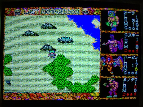 Last Armageddon on the MSX2 is one of the first games I bought once I started getting into Japanese vintage computers. It is a common game available on a wide variety of platforms. The back of the box really called to me, as it showed a variety of bizarre imagery. It's a nicely packaged game with a paper map and stickers you can apply to the map to help you understand your surroundings.