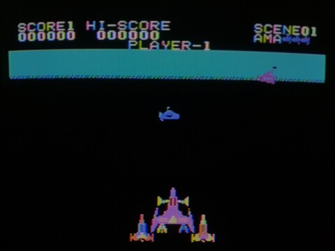 Bermudatriangle (Pyuta games are consistently titled without spaces, except Mission Attack) has a pretty simple concept, it's an underwater shooter where you play as a submarine that has to defend itself from an endless onslaught of enemies coming out of the underwater base, as well as the overhead boat dropping torpedoes from the water's surface.