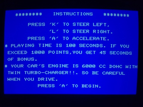 Night Drive is another game, in addition to Jupiter Lander that was released by HAL for both the MZ-700 using PCG (programmable character generator) and the VIC-20 (aka VIC-1001). I don't think this game made it to the Commodore 64, but there is a game called Road Race for Max Machine that looks like a somewhat spruced-up version of this game. I think they probably should stick with black as the background for a game called Night Drive, instead of this max-brightness blue. And as car driving games go, this one is clunky and simple. Not even anyone else on the road! Your goal is to drive as far as possible, which can be achieved by driving far enough to extend your time. ![]() ![]() ![]() ![]() ![]() ![]() The cover art of this game looks similar in motif to the MZ-700 version of Jupiter Lander, too. ![]() ![]() ![]() |