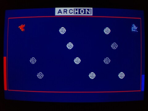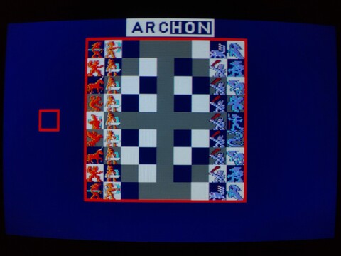 The opening screen has what I believe to be the Phoenix fighting against the Dragon to a rockin' version of the opening song. The game itself is certainly recognizably Archon, the layout and mechanics of the game being identical to the western version. The music is almost non-existent, as it was on the Commodore 64 (not sure about the rest of the ports), but graphics are solid, if dark.