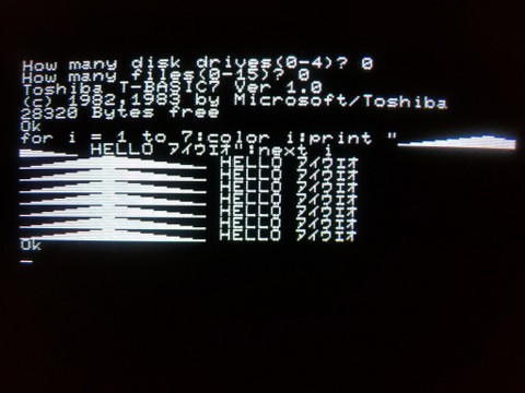 I’ve picked up a few Pasopia7s recently and two of them included this item. It converts digital RGB to RF or composite video signal. This isn’t the only one; I have one from Hitachi but it’s positively huge and requires a separate power adapter, which I don’t have. I also have one for the PC-6001mkIISR, which I will do a write-up of later, because that serves a special purpose. This one, though, just converts the signal. It’s compact and receives power directly from the digital RGB port. I was thinking something like this might be handy for my vintage computer meetup if it works well and can be used on some other systems. ![]() ![]() ![]() ![]() ![]() So obviously the composite output won’t be as good as the digital RGB is, but how usable is it? I took comparison pictures of all three modes: digital RGB, converted composite, and the Pasopia7’s on-board monochrome composite output. I tested them all on my NEC PC-TV455. Here is 40-column text mode. ![]() ![]() ![]() First thing that surprised me was that the monochrome output is literally only black or white. I am pretty sure my other computers with monochrome output – including the Pasopia first-gen, would produce greyscale. Besides that... obviously the digital RGB is crisper and the composite output suffers from color bleed. But it’s not so bad. Some color combinations are better than others; essentially the greater the contrast, the greater the readability. White and yellow are pretty good, with cyan and green pushing the borderline of unacceptability, while purple (actually seems to come out more pink than purple, but there may be adjustments possible to get a closer replication), red, and blue are pretty awful. But if you change the background color to white, I bet blue, red, and purple would look fine. If I were going to read a lot of text, I’d prefer the monochrome composite to the color composite, though. Next is 80-column text mode, and the differences become more pronounced, the composite is pretty unpleasant to try and read through. Again, the monochrome composite would be the way to go. ![]() ![]() ![]() And finally, graphics mode. As the graphics mode doesn’t depend as much on text and you’re looking more at shapes, the composite, while still not as nice as the digital RGB, is still plenty playable. ![]() ![]() ![]() ![]() ![]() ![]() But this, too, I think depends a lot on color combinations. As the game is on a black background, they contrast well with the bright colors of the characters. |