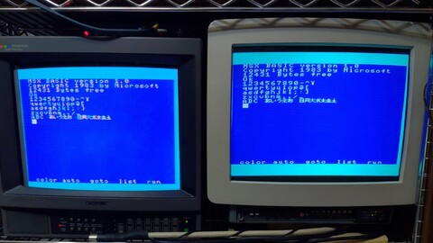 The flip side of this is that (also unique to this MSX) there's no composite output. Your output options are digital RGB and RF. And that's not necessarily an easy choice! Each has a big trade-off. Digital RGB is gloriously crisp and easy to read, but it only supports 8 colors. RF is noisy and artifacty, but supports all 16 colors.