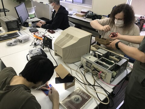 2022-08-20 - Meetup #31 – 2022-08-20 We convened for another retro rendezvous in Kayabacho. Sean arrived first (surprise!) with his SMC-777C. This was his third time bringing this machine, but this time he also brought his recently-procured disk stash, mostly copies included in a system he recently acquired. The stash included compilations totaling around 20 games, as well as CP/M, system utilities, and a word processor program. The games in the boxes were MZ-2500 games for Saburo to copy. continued ⇒ |