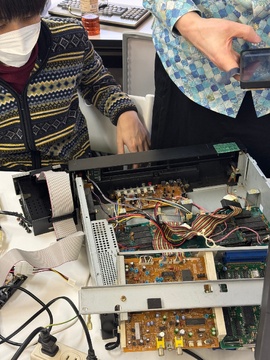 We met up for a 52nd time in our usual place. Sean brought two things with two missions in mind: a modest collection of X1 D 3" games for dumping, and a Hitachi MB-H3 (an MSX2 computer) for repairing the P and @ keys. It seems half the meetup members threw in their hands to help with the P and @ keys, and in the end, we got the P key working! The MB-H3 is notable for having handwriting recognition, which, while a little quirky, actually works pretty well.