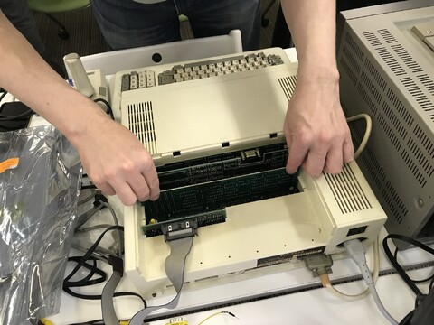 Our 33rd meetup began with Sean bringing his FM-77 L2, and Curt bringing a compatible 400-line board and its required 64KB memory expansion board (thus essentially making it an FM-77 L4 with FM sound expansion). As our on-site CRT monitor only supports 15kHz, we had to use our fallback LCD screen that semi-gracefully displays 24kHz to confirm its proper operation. ![]() ![]() ![]() ![]() ![]() And while that was quite a load to carry, Michelle wins the hardware lugging contest for the millionth time in a row with her PC-9801 AND IBM PC, and if that weren’t enough, a 14″ CRT monitor. ![]() ![]() ![]() ![]() ![]() ![]() ![]() ![]() Sven brought along the latest incarnation of his 8-bit computer board product. Actually, hard to call it a board now, it has its own case and everything! ![]() ![]() ![]() ![]() ![]() Tom brought along his trusty Panasonic MSX2+ computer for gaming activities. ![]() ![]() ![]() And Saburo brought his Creativision for troubleshooting and advice. ![]() ![]() ![]() |