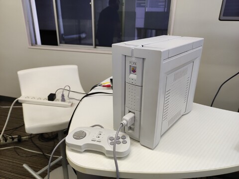 Greg had his PC-FX in tow, a handsome but ill-fated console.