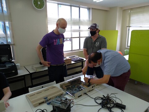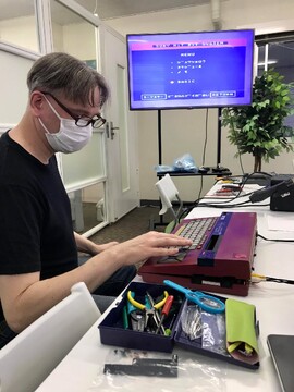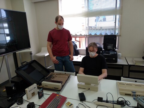 Our ninth meeting was another good time. We met new member Greg and welcomed back original member Christian after a prolonged busy schedule. We had the big meeting room to ourselves again, which was fantastic because there was equipment galore. Sean arrived first with his Fujitsu FM-16π and Sega SC-3000, which had been recently upgraded to red. Greg arrived not too long after with his The C64 and a decked-out Spectrum ZX-80. ![]() ![]() ![]() ![]() The FM-16π is a fairly heavy but portable machine that came with a dedicated carrying case and a printer. People took turns entering small amounts of text into the text editor and testing the printer. ![]() ![]() ![]() ![]() With tremendous effort Sven brought in his bulky Commodore 128D for diagnosis. Edoardo went to work with testing components and changing capacitors, and although it didn’t end in success, perhaps some progress was made and hopefully Sven can get it working again from home! ![]() ![]() ![]() ![]() ![]() ![]() ![]() ![]() Curt brought in his Sony HitBit MSX machine for testing and potential repair, as well as his heavily modified (by the previous owner) and wonky TRS-80. ![]() ![]() ![]() ![]() ![]() Christian was in charge of the PVM this time, but he also brought his Japanese Commodores – the Japanese Commodore 64 and MAX Machine. It was his first time to test the Japanese Commodore 64 and despite the bulging PSU, it worked nicely! ![]() ![]() ![]() ![]() The PVM was quickly put to use with Michelle’s PC-8801MR. It was the first time one of the big-three Japanese 8-bit computers was properly represented at the meet-up. ![]() ![]() ![]() ![]() ![]() People took breaks from the test and repair cycles to talk or play games. ![]() ![]() ![]() ![]() ![]() |