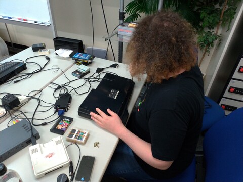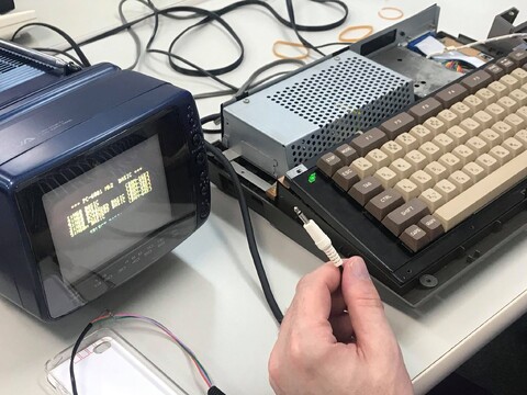 But suddenly Sean’s PC-6001mkII decided to act out. It refused to load tape images from anyone’s smartphone using any cable. A couple of hours were spent poking around at it to no end. As an aside, Sean took it back home, where it loaded tape images without issue, but then promptly died. Michelle set up her OSSC for use with the SC-3000, etc. Very impressive piece of machinery.