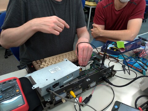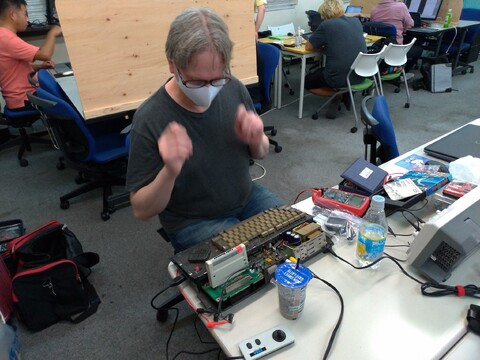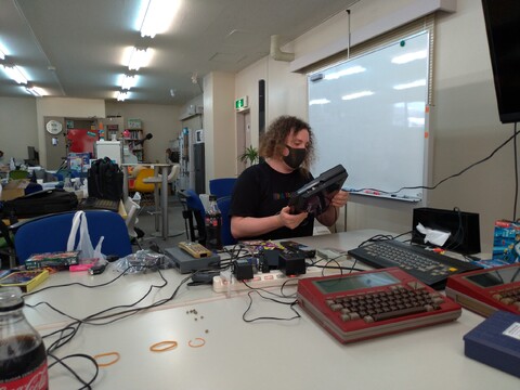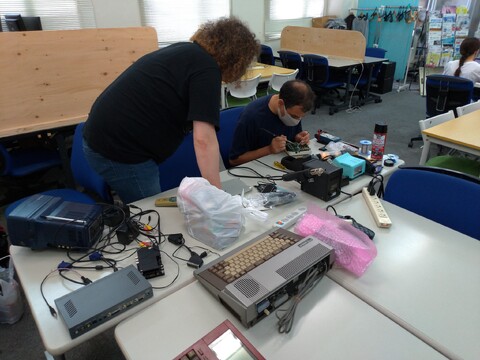 Shortly after Michelle and Sven arrived, Michelle with her PC Engine for repair and MSX Sanyo Wavy, and Sven with his 21st-century keyboard that had developed a problem. Edoardo spent minutes expertly and promptly diagnosing and rectifying Sven’s keyboard. Michelle’s PC Engine and Sean’s PC-8201 received a good fixing, as well.